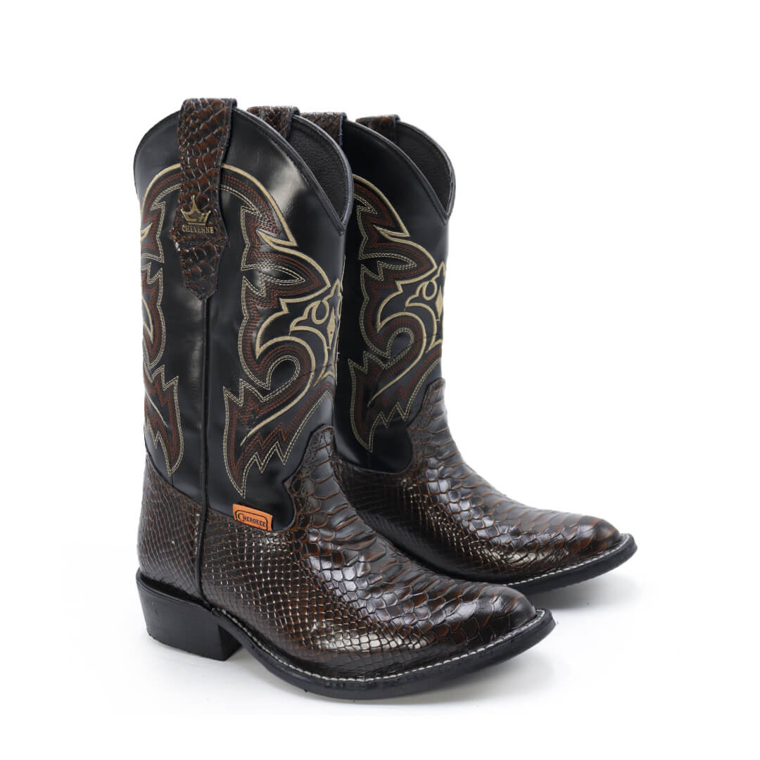 Te presentamos nuestra Bota Vaquera 500 de Pitón con horma oval, fabricada en piel vacuno camaleón y tubo sintético. Su diseño combina estilo y durabilidad, con una suela de hule y tacón de PVC duro que garantiza comodidad durante todo el día.
